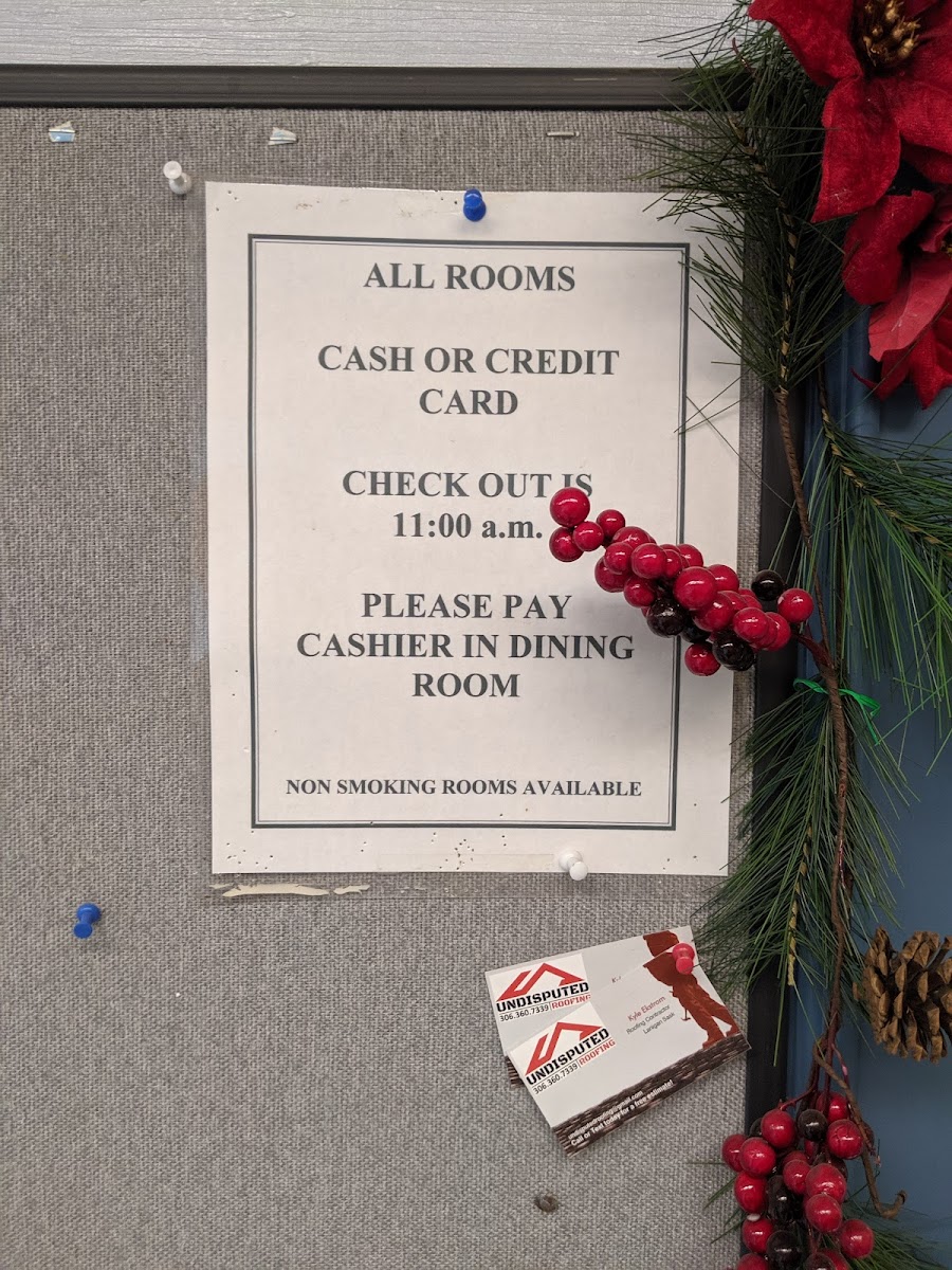 For a small town, this was a great stay. The front receptionist was helpful, the rooms were clean. And the dinner had good food
